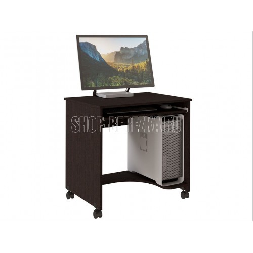 Стол компьютерный СК-04 создан для комфортной работы за компьютером дома и в офисе. Благодаря своим компактным размерам и современному дизайну стол отлично впишется в любой интерьер. Стол оснащен выдвижной полкой для клавиатуры и открытой секцией под системный блок. Наличие опор-колес делает эту модель очень мобильной: Вы без труда можете менять расположение стола внутри помещения. Размеры: Ш*В*Г (800*780*600) мм. Материал фасадов: ЛДСП Венге. Материал каркасов: ЛДСП Венге. Направляющие выдвижной полки: роликовые. Срок службы (мес.) 120 Гарантия (мес.) 24. Стол можно дополнить шкафом для документов исп.1 из коллекции Найс.