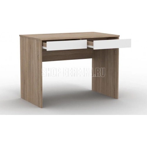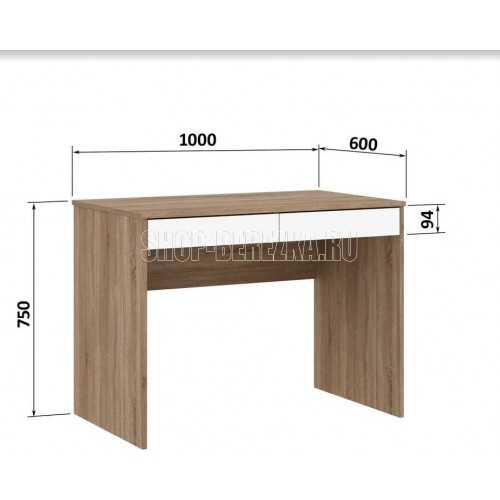 Стол письменный СП-06 создан для комфортной учебы и работы за компьютером. Благодаря своим компактным размерам и современному дизайну стол отлично впишется в интерьер любого дома или офиса. Стол оснащен двумя выдвижными ящиками, в которых удобно хранить канцелярские принадлежности и документы. Размеры: Ш*В*Г (1000*755*600) мм. Материал каркаса: ЛДСП Дуб сонома Материал фасада: ЛДСП Белый Направляющие ящиков: роликовые. Срок службы (мес.) 120 Гарантия (мес.) 24 Стол можно дополнить шкафом для документов исп.1 из коллекции Нордик.