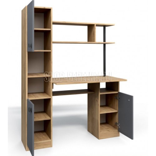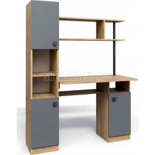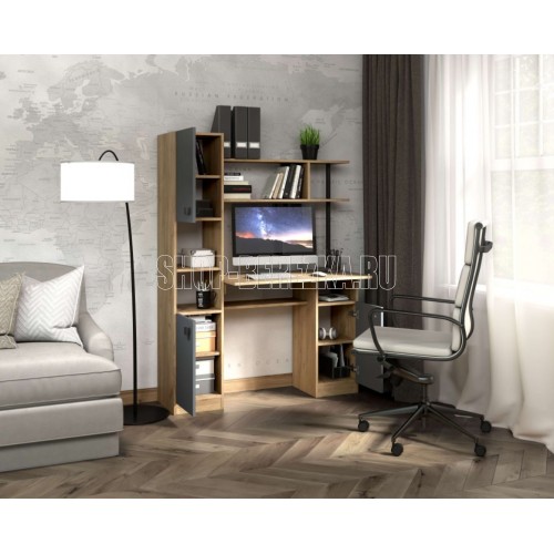 Компьютерный стол СК-7, со множеством функциональных зон. Пенал (дополнительная секция) превращает простой функциональный стол в полноценную рабочую зону, он вмещает закрытые полки для хранения документов и две ниши под оргтехнику. Стол занимает немного места и дает возможность организовать удобное рабочее место практически в любой комнате. Размер ШхГхВ (1200х500х1600)мм. Габариты высота: 1600 мм. Габариты ширина: 1200 мм. Габариты глубина: 500 мм. Стиль: Современный. Материал каркаса: ЛДСП. Материал фасада: ЛДСП. Форма стола: прямоугольный. Цвет корпуса: Дуб золотой Крафт/Серый Графит. Суммарный объем упаковки: 0,09 куб.м.