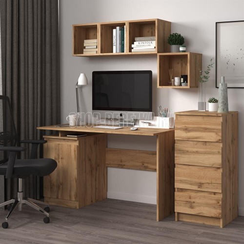 Письменный стол оборудован широкой столешницей и тумбой с двумя полками. Основание и столешница изготовлены из ЛДСП 16 мм. Функционально - широкий модульный ряд позволяет создавать любой интерьер. Эстетично - все фасады имеют скошенный край. Практично - занимает мало места за счёт своей прямоугольной конфигурации и при этом довольно вместителен. Размер изделия (ШхВхГ) 120х72,9х59 см. Цвет: Дуб Вотан.