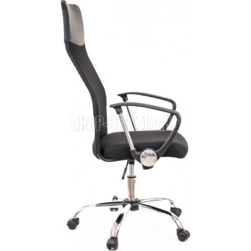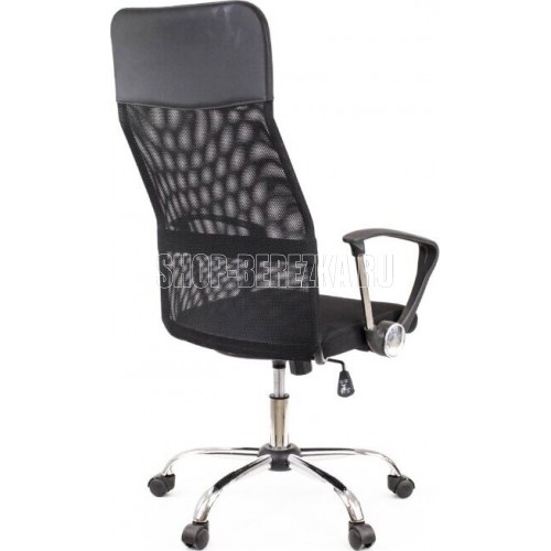 Подлокотники: Пластиковые. Подголовник .Поясничная поддержка . Механизм качания: ТопГан - механизм качания с возможностью фиксации кресла в рабочем положении. Крестовина: Хромированная сталь O 700 мм. Газ патрон: 3 категории (Germany DIN 4550). Ролики Стандарт BIFMA 5,1 (США). Ролик O 50мм. Для паркета. Каркас: Немонолитный. Материал обивки: Сетка+ткань. Материал набивки: Вспененный полиуретан плотностью 22-25 кг/куб.м. Тип кресла: Для персонала. Цвет: Черный. Допустимая нагрузк: 120 кг.