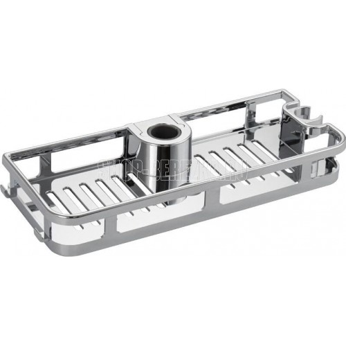 Полка для душевых стоек и стоек тропический душ, глубокая с двумя крючками и держателем для лейки, хромированная, произведена из долговечного и прочного ABS-пластика, благодаря чему она прослужит дольше во влажном помещении ванной комнаты, не желтеет, не ржавеет и не деформируется, не впитывает запахи. Габаритные размеры: длина 280 мм, ширина 110 мм, высота 40 мм, диаметр втулки 23 мм. Вес - 0,250 кг, объём - 0,00337 м3.