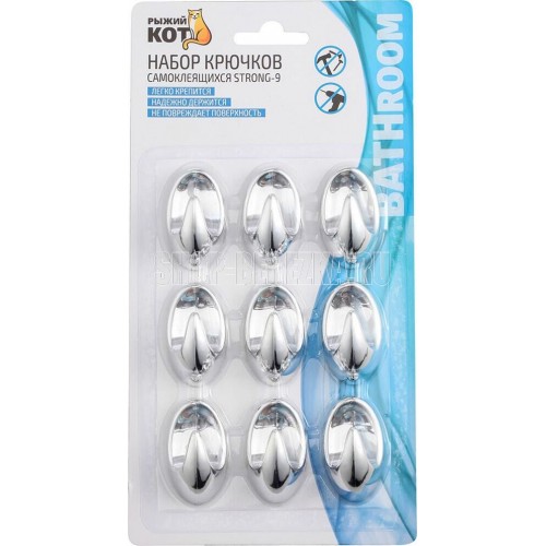 РЫЖИЙ КОТ Набор крючков самоклеящихся STRONG-9, 9 шт (008230)