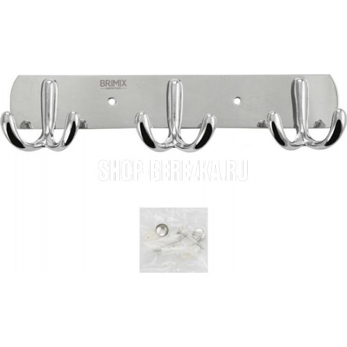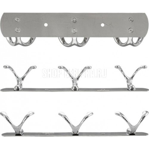 Вешалка - держатель для принадлежностей, металлический, хромированный, с тремя двойными крючками. Изготовлен из прочной нержавеющей стали марки SUS 304 с хромированным покрытием, которое придает безупречный стильный вид и долговечность. Хромированное покрытие очень стойко переносит истирания и обеспечивает зеркальный блеск изделия. На держателе с легкостью можно размещать вещи для сушки или вешать, как полотенца, так и одежду перед походом в душ. Идеально подойдет не только для ванной, но и для кухни, а также для дачи или гаража - при необходимости на держатель можно вешать любые предметы. Изделие крепится к стене с помощью дюбелей и саморезов (входят в комплект). Габаритные размеры: длина 210 мм, высота 55 мм, глубина 30 мм. Вес - 0,125 кг, объём - 0,00036 м3.