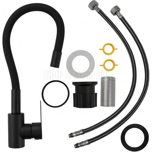 BRIMIX 9318 Смеситель кухонный, гибкий излив, чёрного цвета, из нержавеющей стали марки 304