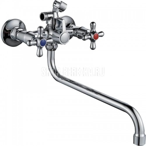 "Смеситель для ванны GOTA ROCIO®, серия Barcelona это: • качественные материалы, устойчивые к коррозии, давлению и перепадам температур; • стойкое никель-хромовое покрытие, обеспечивающее красивый внешний вид и дополнительную защиту; • аэратор гарантирующий ровный и мягкий поток воды и экономию расхода воды за счет насыщения струи воздухом. Характеристики: - Цвет: хром - Покрытие: никель-хромовое - Кран-букса: 1/2"" дюйма, 20 шлицов, пластиковая с керамическими пластинами, угол поворота 90° - Излив: S-образный, длинный, поворотный, длина – 300 мм - Аэратор: пластиковый, съемный, наруж. резьба Ø24мм - Дивертор: шаровый, поворотный 360° В комплекте: держатель для лейки, лейка (1 реж.), шланг ( нерж.сталь 150 см) для монтажа прилагаются эксцентрики, декоративные накладки."