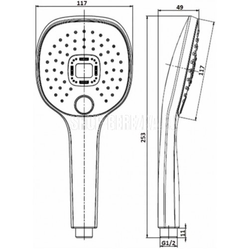 GOLDEN FOX S1189 Лейка д/душа 3-реж. d117 квадрат перекл.кнопкой ABC пластик блистер