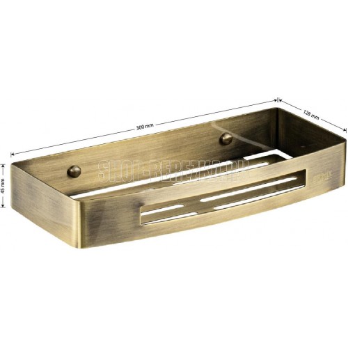 Полочка для принадлежностей, прямоугольная, с литым дном, одноэтажная, обладает высокими эксплуатационными характеристиками и подходит для использования дома, в общественных местах: отелях, ресторанах и пр. Изготовлена из прочной нержавеющей стали с бронзовым покрытием, которое придает безупречный внешний вид и долговечность. Аксессуар не занимает много места, надежно фиксируется к стене при помощи набора креплений (входят в комплект) и служит удобным местом для хранения бытовых и косметических средств. Габаритные размеры: длина 300 мм, ширина 128 мм, высота 45 мм. Вес - 0,740 кг, объём - 0,0035 м3.