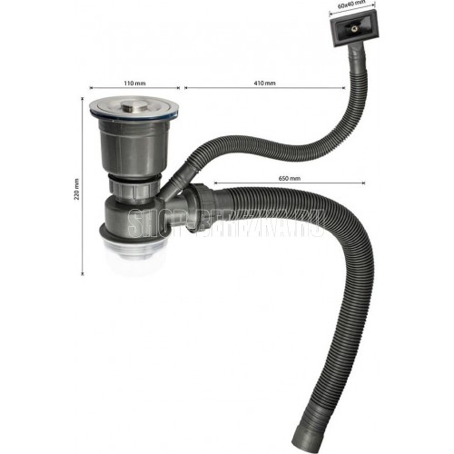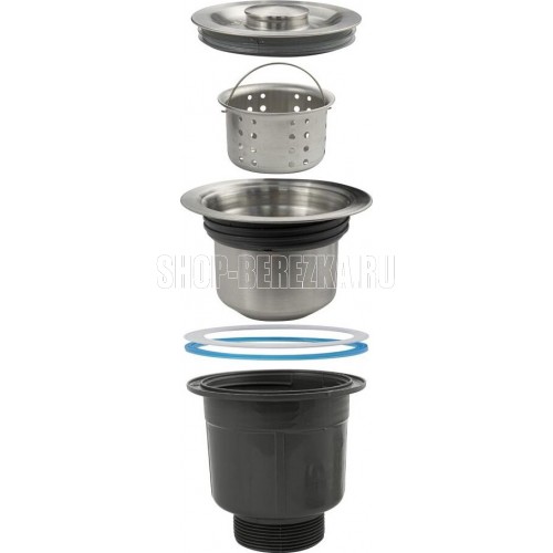 Сифон для кухонных моек, цвет хром, матовый, с диаметром сливного отверстия 90 мм, бутылочного типа с переливом и со сьёмной корзинкой для мусора. С разборным выпуском и нержавеющей решеткой с гофрой, из высокопрочного пластика АБС с затвором от проникновения запахов. Форма сифона позволяет поддерживать хорошую пропускную способность слива сточной воды, выполняя свою главную функцию - формирование гидрозатвора для отсечения неприятных запахов из канализации. Конструкция позволяет легко, без демонтажа, снять отстойник (стакан) и почистить сифон в случае засорения, достать случайно упавшие в слив раковины мелкие ценные вещи. Сифон прост в установке. Габаритные размеры: высота стакана 220 мм, гофра 650 мм, верхняя крышка 110 мм. Комплект: сифон, гофра, перелив, уплотнения. Вес - 0,500 кг, объём - 0,01080 м3.