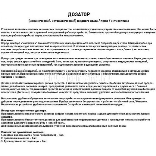 Механический дозатор для жидкого мыла хромированный, предназначен для установки в любых санитарно-гигиенических комнатах. Имеет ключ и замок. Дозатор прост в эксплуатации, достаточно нажать на кнопку для получения порции средства. Для удобства контроля за уровнем мыла на лицевой поверхности есть смотровое окно. Корпус диспенсера изготовлен из нержавеющей стали марки 201, который выдерживает различные механические воздействия. В резервуар емкостью 1000 мл можно заливать как жидкое мыло, так и прочие средства. Разместив диспенсер на стене, достаточно время от времени проверять заполненность резервуара. Иного ухода он не требует, не нуждается в замене батареек. Это отличное решение как для частных владений, так и для гостиниц, кафе, столовых и прочих общественных мест. Габаритные размеры: высота 205 мм, ширина 125 мм, глубина 60 мм. Вес - 0,500 кг, объем - 0,00290 м3.