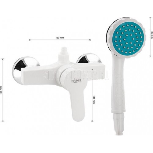BRIMIX 594 Смеситель в ДУШ , шаровый из высокопрочного пластика АБС - БЕЛЫЙ