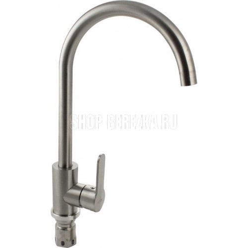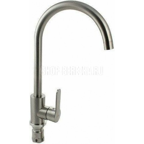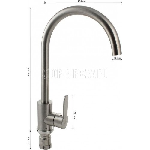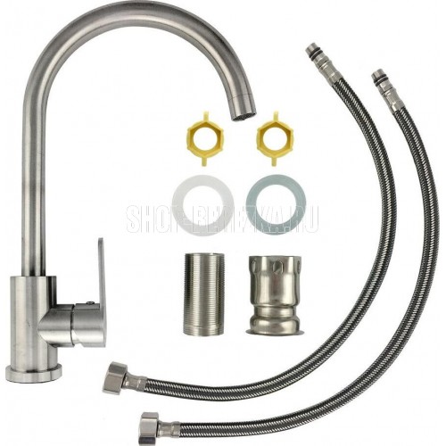 Смеситель для кухонной мойки и раковин, литой матовый корпус, из нержавеющей стали марки 304, с высоким С-образным изливом, шаровый. Крепление резьба - гайка, картридж d = 35 мм, ручка литая. Аэратор для экономии воды. Такая модель может использоваться на домашней кухне, на даче, в медицинских учреждениях и общественных местах. Габаритные размеры: высота 350 мм, длина 210 мм, диаметр посадочного седла 53 мм, длина резьбы 60 мм, длина подводки 500 мм. Вес - 1,500 кг, объём - 0,00635 м3. В комплекте паспорт, корпус с изливом, подводка 1/2, крепеж, набор прокладок.