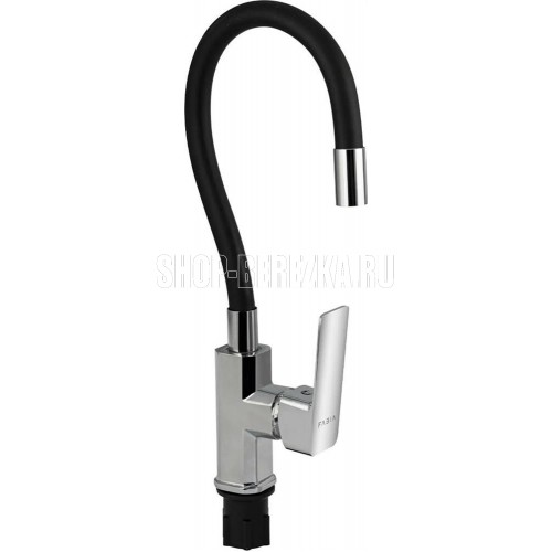 FABIA 9655 Смеситель для кухни, шаровый, с гибким черным изливом, корпус квадратный, цвет ХРОМ.