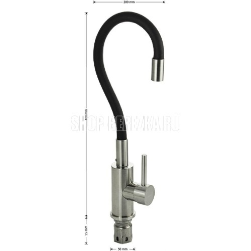 САНАКС 13063 Смеситель для кухни, гибкий черный излив, из нержавеющей стали марки 304, цвет САТИН