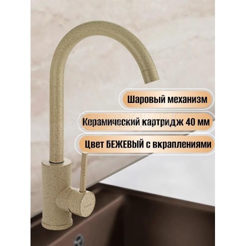 САНАКС 13092 Смеситель для кухни, шаровый, С - образный излив, цвет БЕЖЕВЫЙ КАМЕНЬ