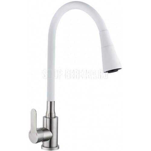 Смеситель для кухни с гибким изливом, серия Садко, АНТЕЙ - Материал: нержавеющая сталь (SUS304) - Вес смесителя: 1,220 кг - Цвет: сатин + белый - Картридж: o35мм, пластиковая с керамическими пластинами, WANHAI - Излив: поворотный, высокий, гибкий - Аэратор: пластиковый, съемный, 2-х режимный - Крепление: FAST FIX (гайка) из 201 стали В комплекте: гибкая подводка 35см (2шт.), крепление, декоративная подставка под смеситель (1шт.), резиновая прокладка (1шт.), резиновое уплотнительное кольцо (1шт.), пластиковая шайба (1шт.), паспорт смесителя (1 шт.)