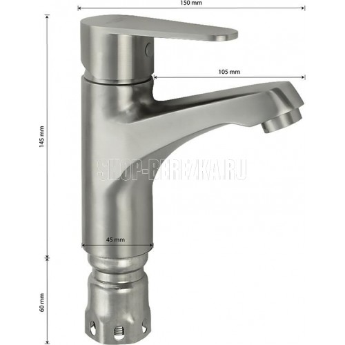 Смеситель для раковины, матовый литой корпус, из нержавеющей стали марки 304, с коротким литым изливом, литая ручка, шаровый. Крепление резьба - гайка, картридж d = 35 мм. Аэратор для экономии воды. Такая модель может использоваться на домашней кухне, на даче, в медицинских учреждениях и общественных местах. Габаритные размеры: высота 145 мм, длина 150 мм, длина излива 105 мм, диаметр посадочного седла 45 мм, длина резьбы 60 мм, длина подводки 450 мм. Вес - 1,750 кг, объём - 0,00237 м3. В комплекте паспорт, корпус, подводка 1/2, крепеж, набор прокладок.