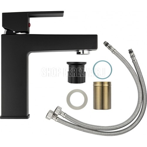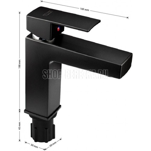 Смеситель для раковины, из высокопрочного пластика АБС, ЧЕРНЫЙ с коротким изливом, литой квадратный корпус, литая ручка, шаровый. Крепление резьба - гайка, картридж d = 40 мм. хромированный аэратор для экономии воды. Габаритные размеры: высота 190 мм, длина 165 мм, посадочное седло 50*50 мм, длина резьбы 45 мм, длина подводки 450 мм. Вес - 0.90 кг, объём - 0.00248 м3. В комплекте паспорт, корпус, пластиковая подводка с латунными штуцерами 1/2, крепеж, набор прокладок.