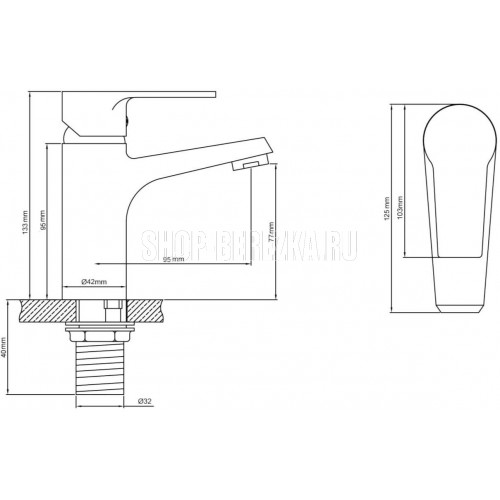 Однорычажный смеситель для раковины. Корпус из латуни, крепление на гайке, присоединительный размер - 32 мм