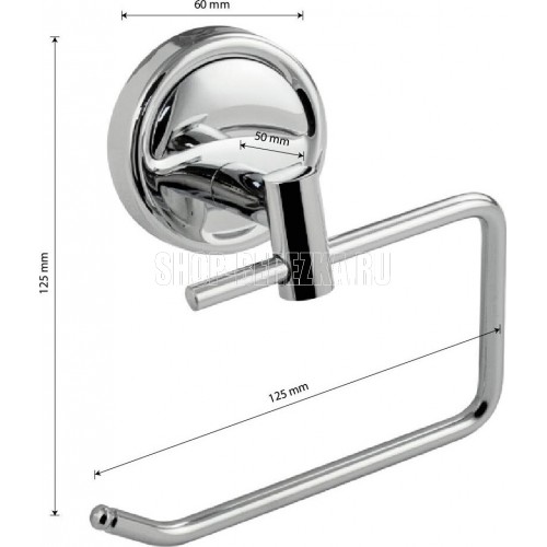 Бумагодержатель без крышки, металлический, хромированный, стильный и функциональный элемент санузла. Материал изготовления — ЦАМ (цинк-алюминий-медь). Держатель для туалетной бумаги легко и удобно крепится к стене при помощи фурнитуры входящей в комплект поставки. Имеет специальное хромированное покрытие, которое защищает изделие от влаги и придает ему блестящий внешний вид. Удобно чистить и легко менять рулоны. Габаритные размеры: ширина 125 мм, высота 125 мм, глубина 50 мм, основание 60 мм. Вес - 0,300 кг, объём - 0,00046 м3.