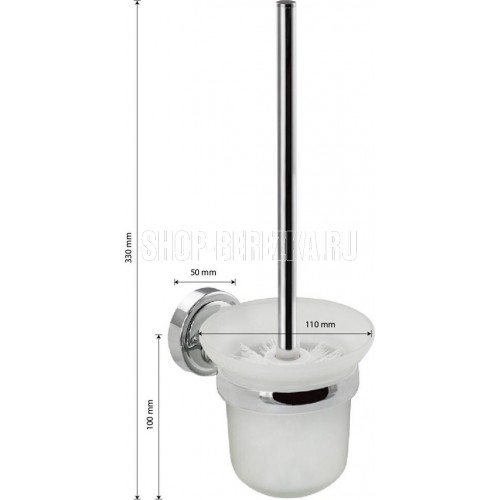 Ёршик со стеклянной матовой колбой, настенный, необходимый аксессуар любой туалетной комнаты. Приспособление обеспечит порядок и правильное хранение гигиенических принадлежностей. Изделие выполнено из стекла и металла с хромированным покрытием. Жесткая щетина ерша гарантирует отличный результат очистки санузлов. Такое сочетание материалов делает конструкцию прочной и долговечной. Держатель колбы легко и удобно крепится к стене при помощи фурнитуры входящей в комплект поставки. Имеет специальное хромированное покрытие, которое защищает изделие от влаги и придает ему блестящий внешний вид. Габаритные размеры: высота 330 мм, высота колбы 100 мм, диаметр 110 мм. Вес - 0,600 кг, объём - 0,00345 м3