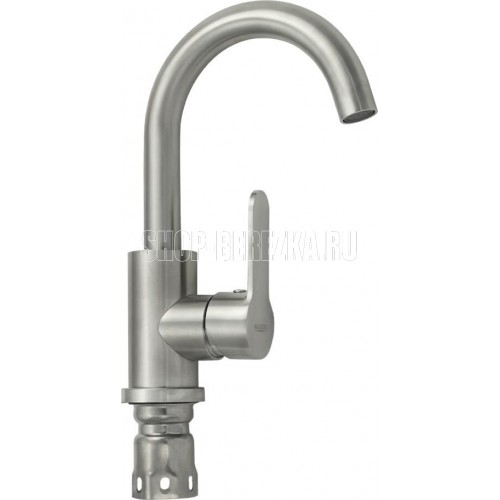 Смеситель для раковины, матовый литой корпус, из нержавеющей стали марки 304, с высоким поворотным С-образным изливом, ручка литая, шаровый. Крепление резьба - гайка, картридж d = 35 мм, аэратор для экономии воды. Такая модель может использоваться на домашней кухне, на даче, в медицинских учреждениях и общественных местах Габаритные размеры: высота 230 мм, длина 180 мм, диаметр посадочного седла 50 мм, длина резьбы 60 мм, длина подводки 500 мм. Вес - 1,400 кг, объём - 0,00310 м3. В комплекте паспорт, корпус, подводка 1/2, крепеж, набор прокладок.