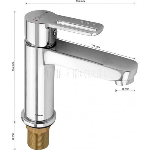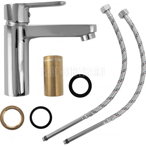 Смеситель для раковины, хромированный, с коротким изливом, литой корпус, ручка с прорезью, шаровый. Материал изготовления — ЦАМ (цинк-алюминий-медь) + нержавеющая сталь. Крепление резьба - гайка, картридж d = 35 мм. Аэратор для экономии воды. Габаритные размеры: высота 155 мм, длина 155 мм, длина излива 115 мм, диаметр посадочного седла 50 мм, длина резьбы 50 мм, длина подводки 400 мм. Вес - 1,000 кг, объём - 0,00295 м3. В комплекте паспорт, корпус, подводка 1/2, крепеж, набор прокладок. Габаритные размеры коробки: ширина 200 мм, высота 80 мм, глубина 150 мм.