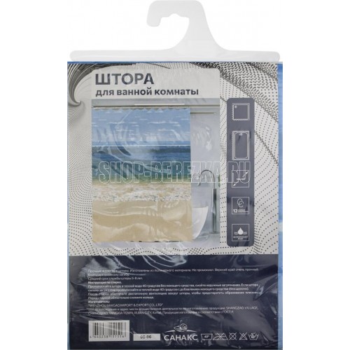 САНАКС 06-06 Штора с рисунком, морской берег, матовая, в ванную комнату, с кольцами, PEVA, 180 х 180 см.