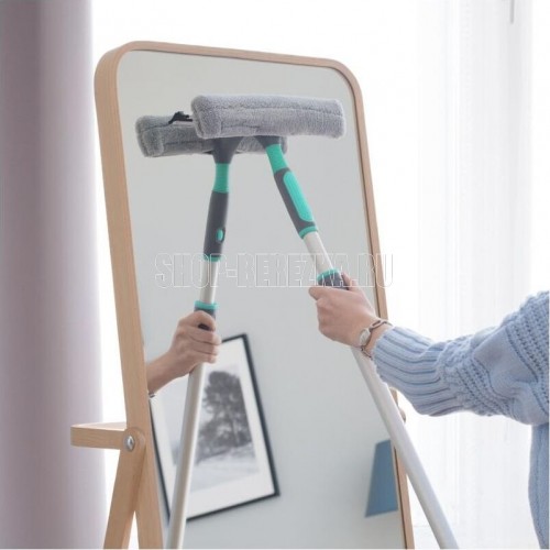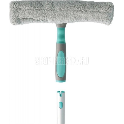 Стеклоочиститель изготовлен из алюминия и ударопрочного CO POLIMER пластика. Подходит для мытья окон любой формы и размера. Гибкий узел, расположенный на ручке стеклоочистителя, обеспечивает максимальное прилегание к стеклу для легкого и качественного мытья, особенно в труднодоступных местах. С помощью телескопического механизма можно подобрать удобную длину от 81 см до 147 см. Насадка надежно крепится к стеклоочистителю на липучки. В процессе уборки она не смещается, что делает уборку легкой. Насадка обладает высокой впитывающей способностью, не оставляет разводов и выдерживает до 600 циклов уборки. Ее можно стирать в стиральной машинке при температуре 60 градусов.
