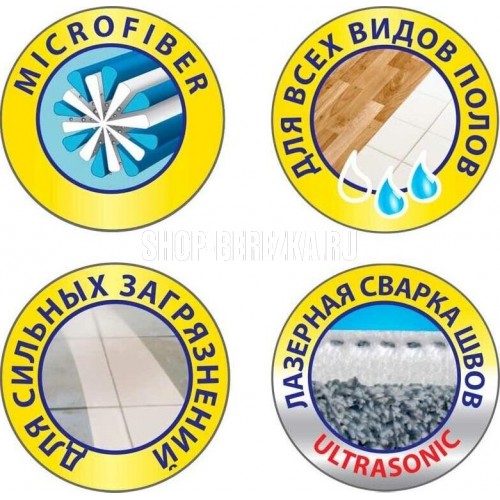 Цвет: серый Состав: полиэстер Размеры в сложенном виде (см): 36x13x2 Длина: 58 см Ширина: 11 см Насадка из микрофибры подходит для всех видов напольных покрытий. Структура микрофибры лучше впитывает воду и идеально подходит для бережной уборки деликатного пола (пробка, инженерная доска, ламинат, паркет с покрытием воском, маслом, лаком). В процессе уборки насадка не оставляет разводов. Идеальный результат достигается за счет качества микрофибры, которая обладает повышенной впитывающей способностью и удерживает на своей поверхности любые загрязнения, в том числе и маслянистые вещества. Насадка из микрофибры легко отжимается, не скатывается, быстро высыхает и не впитывает запахи, выдерживает до 600 циклов уборки и крепится к платформе швабры на липучки.