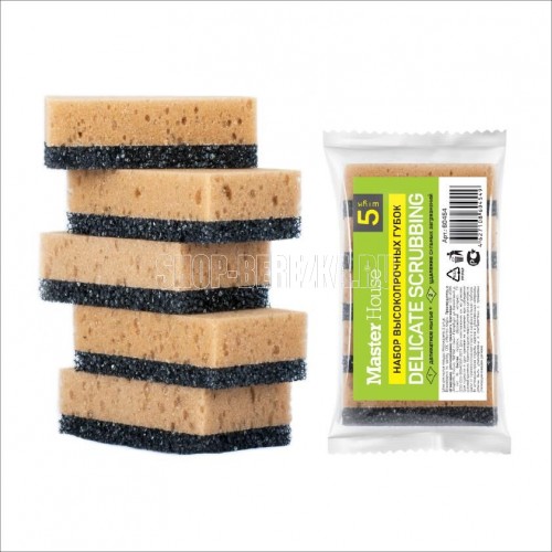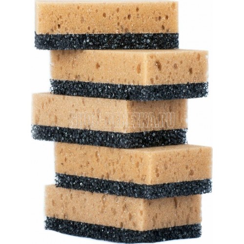 Набор губок 5 штук. Высокопрочные губки для мытья посуды, прямоугольные. Материал: высокопористые поролон и абразивный материал. Мягкий слой – для деликатного мытья, жесткий – для сильных загрязнений. Срок годности не ограничен. Размер 1 губки: 8,8*5,4*3cm +/-1-2mm Поролон 22кг/м? Массажный поролон 25кг/м?