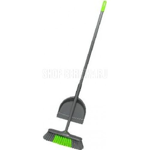 Универсальный комплект для уборки - щетка+совок. Щетка имеет щетину средней жесткости, расположенную под углом, что позволяет максимально эффективно использовать ее для сбора мусора. Совок удобно хранить вместе с щеткой, благодаря системе "клик". Рукоятка имеет петлю для хранения в подвешенном состоянии.
