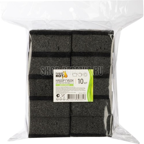 РЫЖИЙ КОТ Набор губок для мытья посуды двухслойных прямоугольных KS-08, 5 шт (черный) (107568)