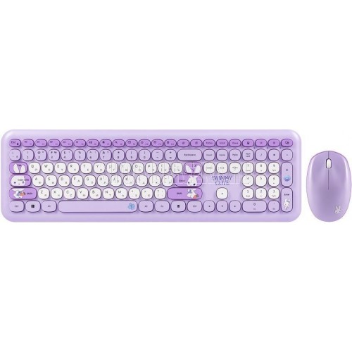 Полноразмерная клавиатура имеет расширенное количество мультимедийных клавиш - 18 шт. (совместно с FN). Упругие прорезиненные ножки надёжно удерживают клавиатуру на рабочем столе. Беспроводная мышь обтекаемой формы с бесшумными кнопками и универсальным хватом для левой и правой руки.