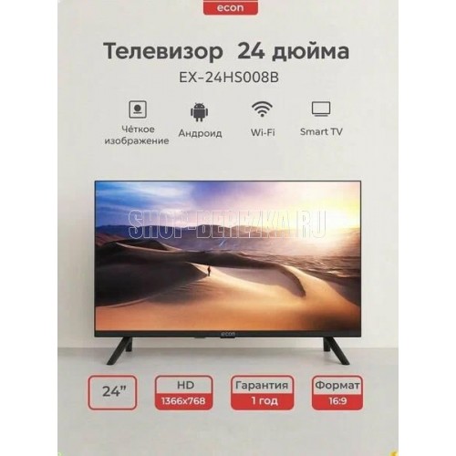 SMART телевизор с диагональю экрана 24" Android 14 Диагональ: 24" (60 см) Цифровой тюнер DVB-T2/DVB-C (H.265H.264 MPEG 412 Video) USB медиаплеер с поддержкой MKV видео (питание USB 5В,