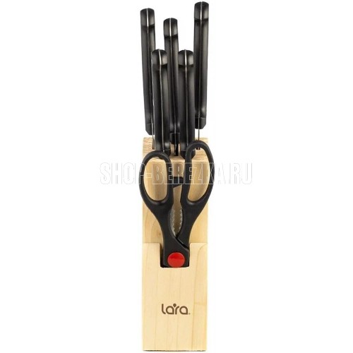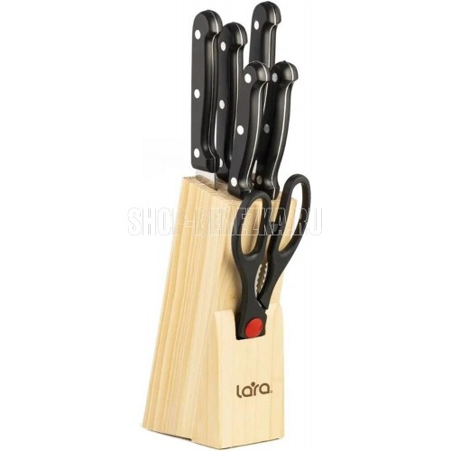LR05-53 LARA Набор ножей 7 предметов: ДЕРЕВЯННАЯ ПОДСТАВКА + 5 ножей + ножницы