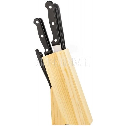 | Комплектация | - нож для овощей 9 см, - нож универсальный 20 см, - нож разделочный 12,5 см, - нож для хлеба 20 см, - нож поварской 20 см, - ножницы, - подставка. |