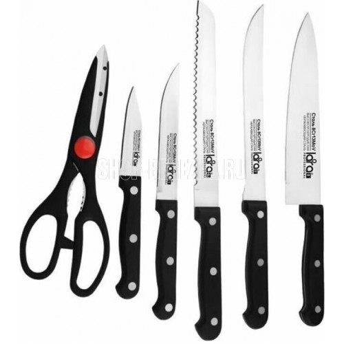| В набор входит | шеф-нож, универсальный нож, нож для овощей, нож для хлеба, разделочный нож, подставка, ножницы |