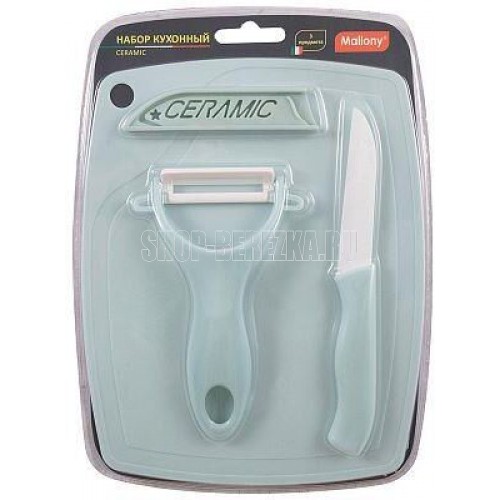 MALLONY Набор кухонный CERAMIC (3 предмета): нож, овощечистка, разделочная доска (008661)