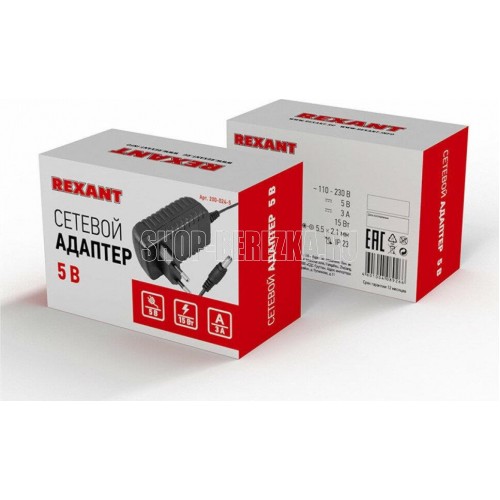 REXANT (200-024-5) Источник питания 110-220 V AC/5 V DC 3 А 15 W с DC разъемом подключения 5.5х2.1, без влагозащиты (IP23)