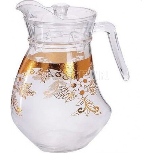 Кувшин LORAINE, выполнен из высококачественного стекла и пластика. Удобная форма носика и крышка позволяет защитить ваш напиток от попадания излишних запахов в ваш напиток. Подходит для: соков,морсов,компотов и любых интересных для Вас напитков. Кувшин так же имеет удобную ручку,которая упрощает использование его. Поверхность гладкая с золотистым рисунком .
