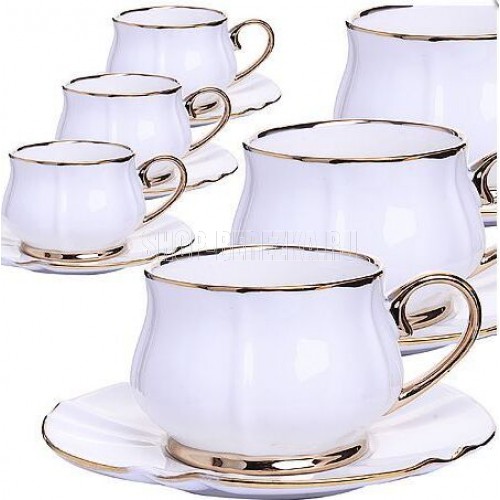Чайный набор 12 пр LR (х6). Материал: костяной фарфор. Цвет: белый, золотой. D чашки 7,7 см, высота 6,5 см. Объем чашки: 200 мл. Диаметр блюдца: 15 см. Размер упаковки: 40 х 25,5 х 9,5 см. Упаковка: подарочная коробка. Вес: 2,4 кг. Страна производитель: Китай.