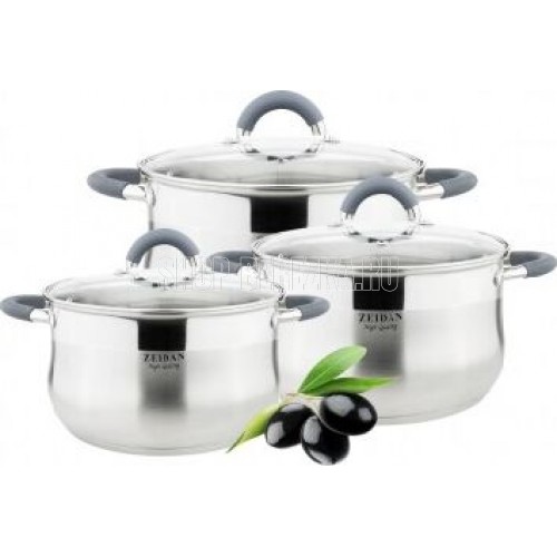 ZEIDAN Z-50608 наб. посуды 6 пр. Кастрюля с крышкой д. 16 см – 2,1 л. Кастрюля с крышкой д. 18 см – 3,0 л.Кастрюля с крышкой д. 20 см – 4,0 л. Высококач. нерж. сталь. 3-слойное термоаккумулирующее дно. Подходит для всех видов плит, включая индукц.