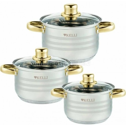 Набор из 6 предметов; Материал: нержавеющая сталь; Кастрюля 2л со стеклянной крышкой, диаметр: 16 см; Кастрюля 2,5л со стеклянной крышкой, диаметр: 18 см; Кастрюля 3,5л со стеклянной крышкой, диаметр: 20 см; Удобные клепаные ручки не нагреваются; Крышки с паровыпуском; 5-ти слойное капсульное дно; Мерная шкала; Подходит для всех видов кухонных плит