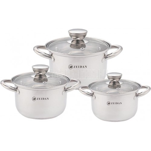 Набор посуды, 6 предм. (3 КАСТРЮЛИ С КРЫШКАМИ: 1,9 Л ( d16 см ), 2.6 Л (d18 см ), 3.6 Л (d20 см ), нержавеющая сталь, 3-х СЛОЙНОЕ КАПСУЛИРОВАННОЕ ИНДУКЦИОННОЕ ДНО, крышки - стекло, матовая полировка снаружи, зеркальная полировка внутри.