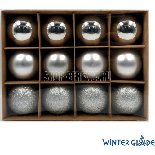 • Количество шаров в упаковке: 12 штук • Комплектация: шар ? 6 см - 12 шт. • Материал: пластик • Цвет: серебряный микс • Размер индивидуальной упаковки: 18х24х6 см • Вес брутто: 0,178 кг • Вес брутто в транспортной коробке: 4,9 кг • Размер транспортной упаковки: 50x39x39 см • Производитель: Winter Glade • Страна: Китай