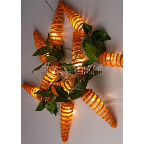 Оригинальные и О-о-чень веселые "СПИРАЛЬКИ-МОРКОВКИ" KOC_GIR-B101 освежат интерьер, станут дополнительным источником света и не оставят равнодушными ни взрослых, ни детей. 10 ярко-оранжевых закрученных в конусы спиралек 10х4см с теплым свечением диодов добавят хорошего настроения и позитивных эмоций. Достаточно длинная, около 2х метров, станет универсальным украшением к празднику или интерьерным решением "на каждый день". Работает от батареек для более универсального и безопасного использования.