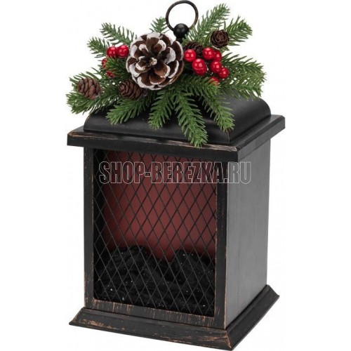 NEON-NIGHT (511-027) Светодиодный камин Рождество с эффектом живого огня 15х14х26см, батарейки 2хС (не в комплекте) и USB, бронзовый