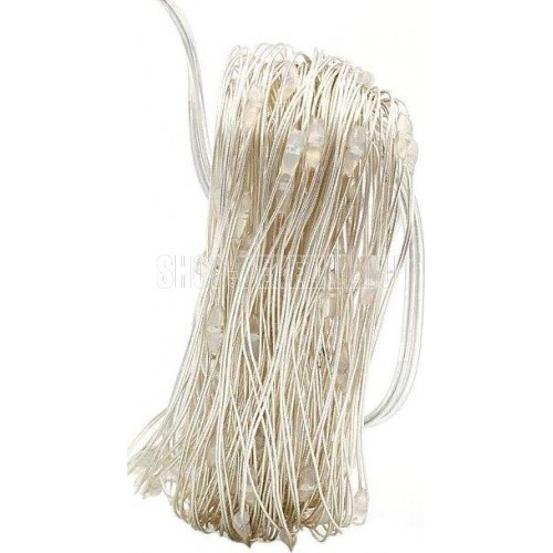 Электрогирлянда светодиодная "Дождик". белый теплый. 100LED ламп, 10 нитей по 10LED ламп, длина 1м, гибкие. без мигания. питание от сети 220-240В, 50 Гц , мощность 3,6Вт. для использования внутри помещений класс защиты IP20. прозрачный провод. материал: ПВХ, алюминий, медь, лампы.