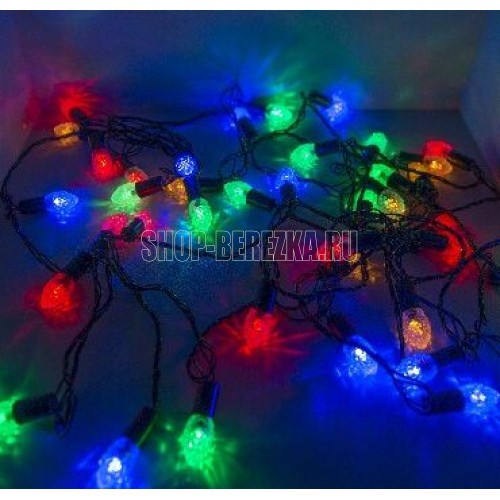 FUNRAY SE-CONE-540M (Шишки) Гирлянда светодиодная 5M, 40LED, мульти (4цв.), гирлянда со световыми элементами декоративной формы в виде шишек, длина изделия составляет 5 метров, количество светодиодных ламп 40 шт, питание от сети 220В, цвет свечения мульти: синий, красный, зеленый, желтый, не имеет контроллера, цвет шнура темно-зеленый, гирлянда имеет степень защиты IP20 - защита от твердых частиц размером от 12 мм.